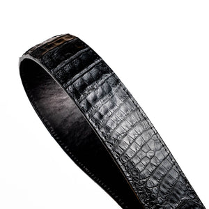 The IOWA belt is a bold tribute to exotic craftsmanship and refined Western design. Handcrafted from full caiman crocodile skin, this belt showcases the natural scale patterns of the belly and flanks, enhanced by precise artisanal detailing and a Western-style antique brass buckle. The inside features a standout element: a hand-stained, gradient finish full-grain leather lining, carefully dyed to match the exterior color—making it one of the most distinctive features in the Marco Di Milano accessories lineup.